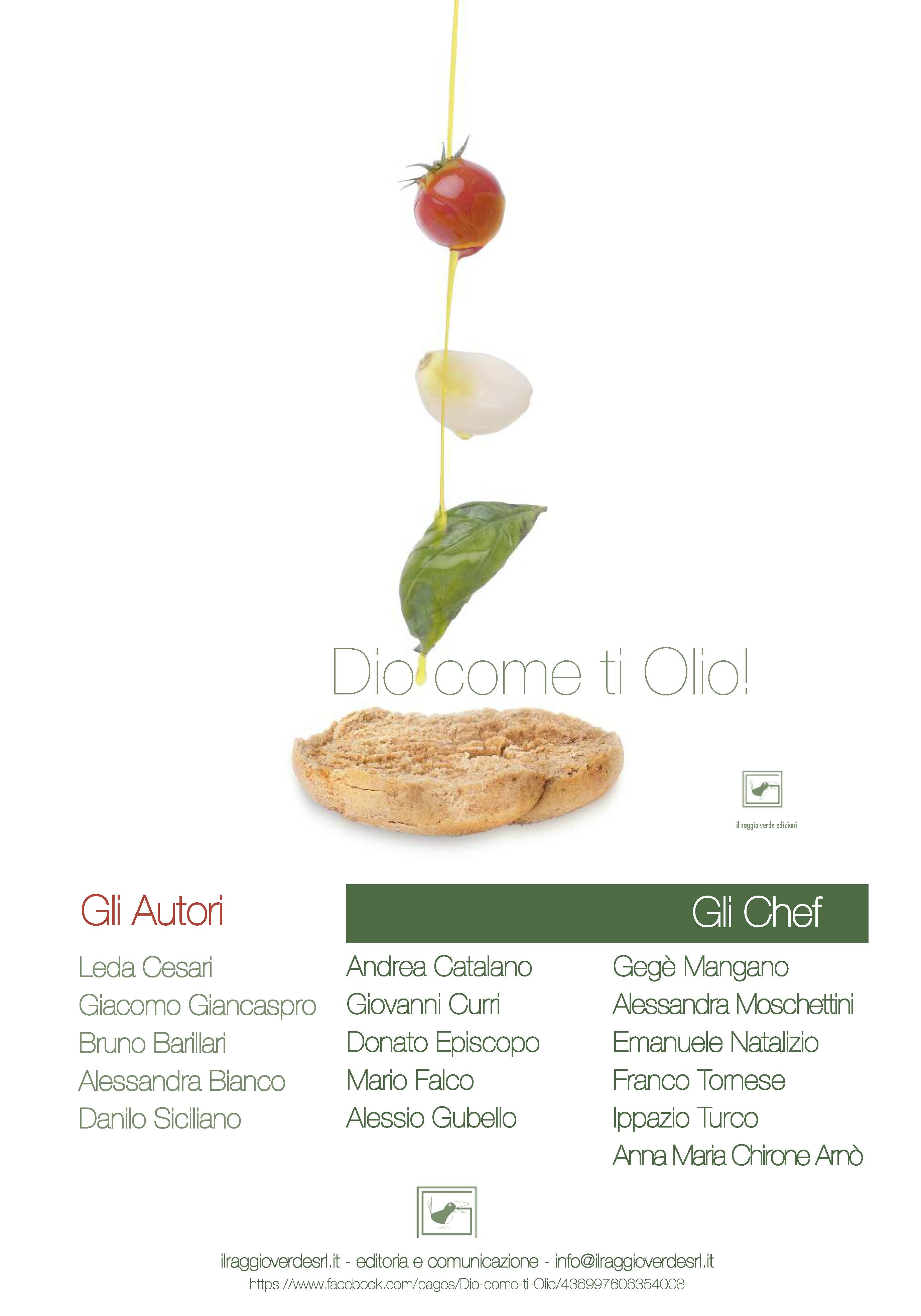 Rassegna Azzurro Salentino e Il Raggio Verde edizionipresenteranno il libro Dio, come ti Olio! secondo volume della collana “Dove c’è Gusto” diretta da Leda Cesari. Il progetto accosta alle originali e inedite proposte gastronomiche degli chef ospiti la bellezza e la cultura del territorio pugliese, un territorio raccontato anche attraverso gli scatti esclusivi del fotografo Bruno Barillari, in cui vengono esaltate le proprietà dell’olio, elemento di identità e simbolo di natura e storia oltre che modello di alimentazione sana ed equilibrata: perché la seduzione, si sa, passa anche dallo stomaco.
