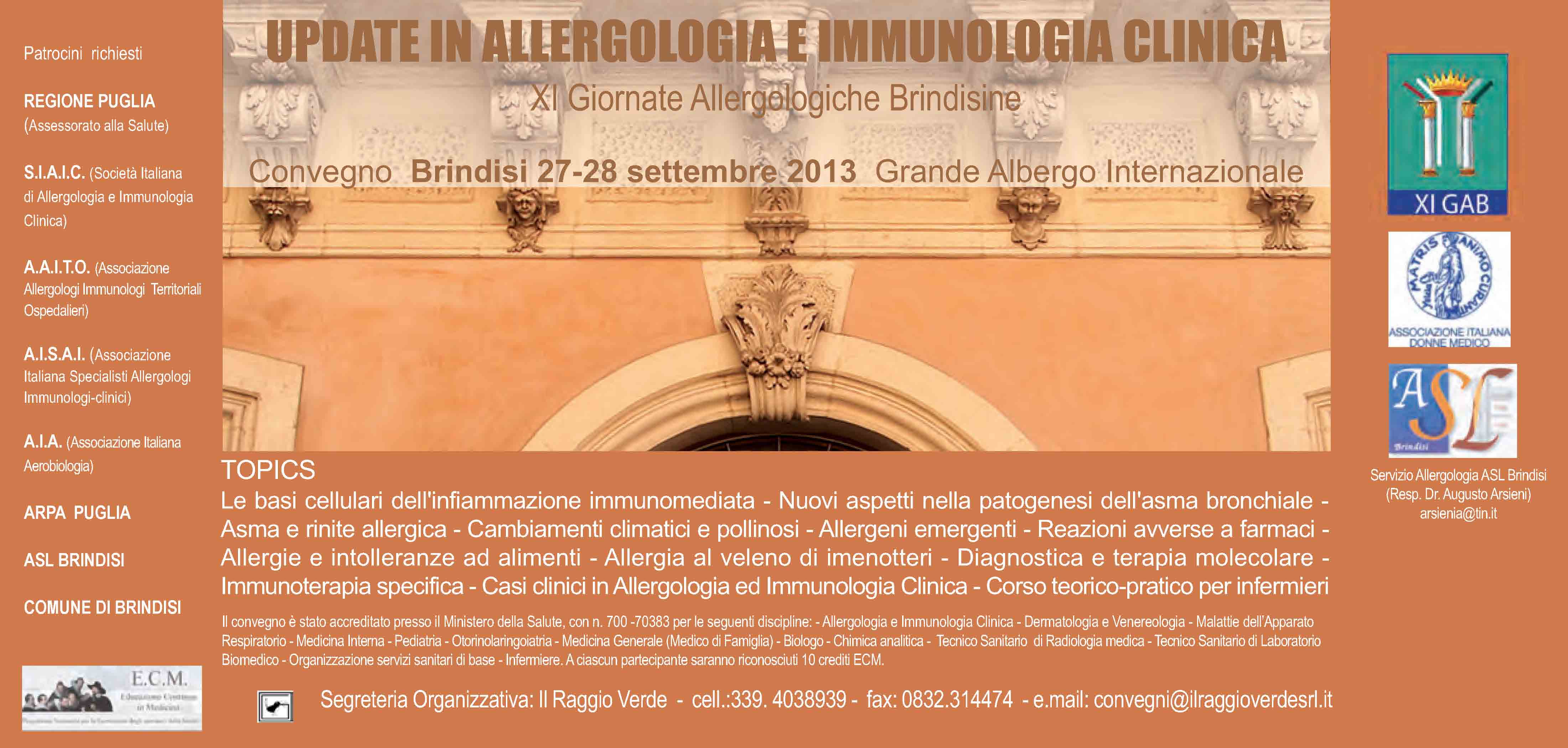 XI Giornate Allergologiche Brindisine il 27 e 28 settembre al Grande Albergo Internazionale