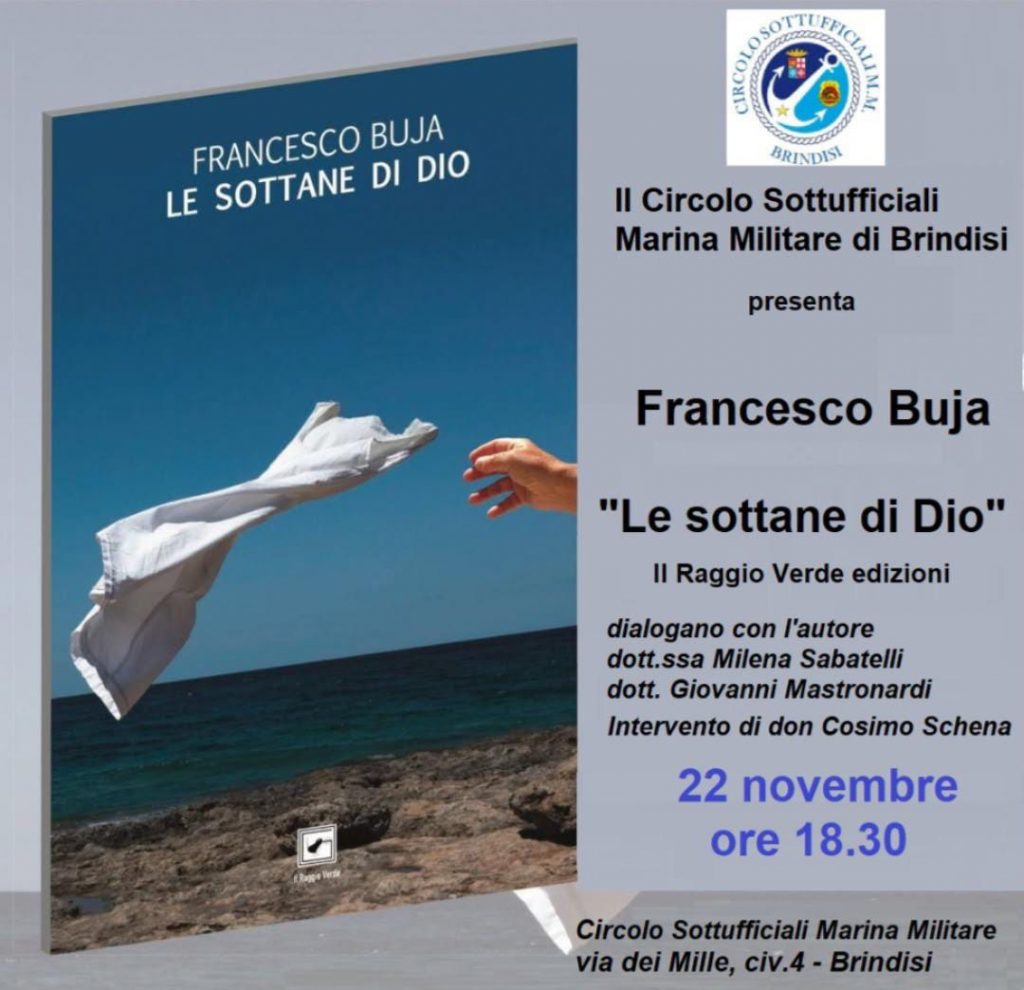 Un romanzo dannunziano, ma caratterizzato anche da una vena pirandelliana e da un sapore che richiama “le ambizioni sbagliate” e “gli indifferenti” di Moravia. È il romanzo “Le sottane di Dio”, opera prima del giornalista leccese Francesco Buja che sarà presentata sabato 22 novembre alle 18.30 al Circolo Sottufficiali della Marina militare, in Brindisi. Titolo evidentemente provocatorio che induce alla curiosità sulla relazione fra le sottane delle donne e Dio. Non blasfemo, anzi. Ambientato nella Roma degli anni Ottanta, fra…